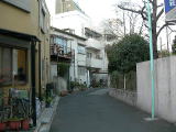 へび道 文京区千駄木二丁目と台東区谷中二丁目の区界の約300mほどS字の道が続く